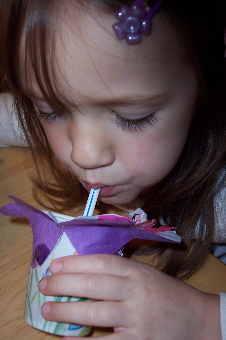 3) Bend the petals around the cup. It's a flower! Fill the cup with juice (nectar).
