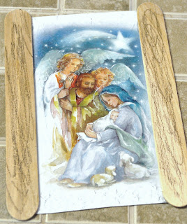 1) Lay out the craft sticks to form a frame. This gives you a guide for the size to cut the card. Cut the card.